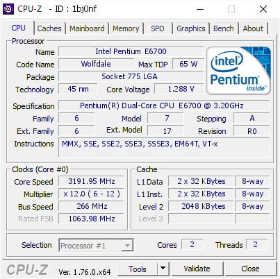 Pentium® Dual-Core CPU E6700 @ 3.20GHz